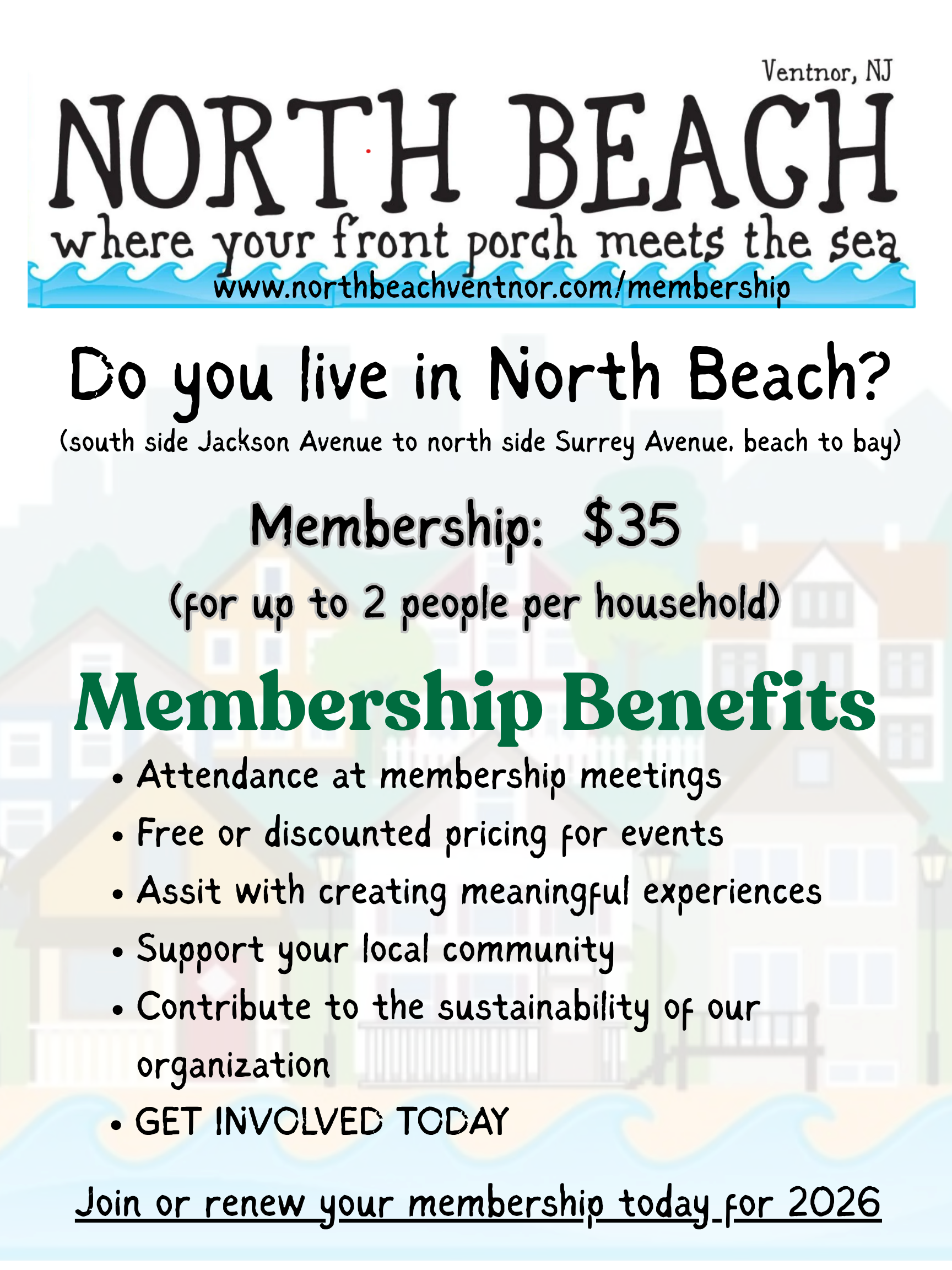 Registration Required by 5/17 Registration Required by 5/17 Applications Due by June 1st Applications Due by June 1st Click here to Become a member Click here to Become a member Shop Shop Now Shop Now Latest and greatest News Jan 2, 2026 North Beach Night of Music at Ventnor Coffee 3/21/26. An Evening of Live Music, Community & Great Coffee Jan 2, 2026 Jan 2, 2026 Dec 23, 2025 North Beach Shines at the Ventnor Holiday Parade Dec 23, 2025 Dec 23, 2025 Dec 12, 2025 North Beach Holiday Luncheon: A Delicious and Joyful Success Dec 12, 2025 Dec 12, 2025 Nov 13, 2025 Membership Update Nov 13, 2025 Nov 13, 2025 READ MORE READ MORE TRENDING • SHOP LOCAL Enjoy savings from North Beach local businessesREAD MORE Follow us @northbeachventnor